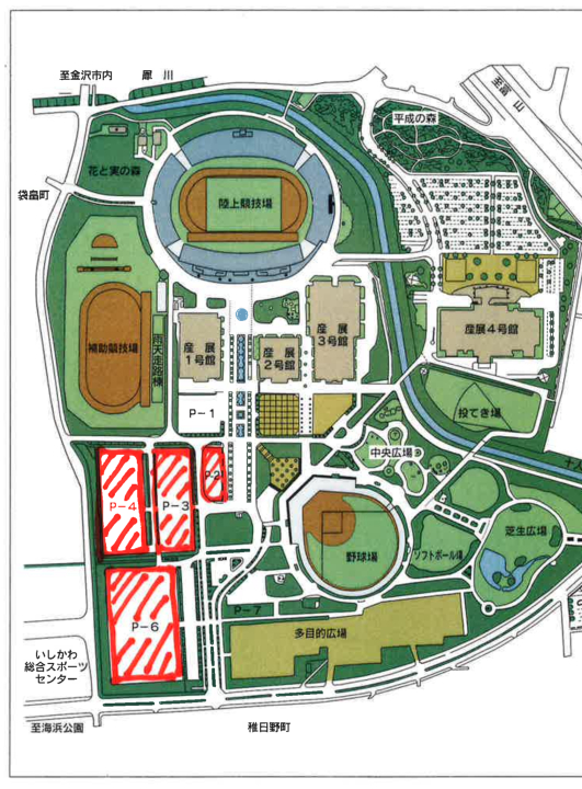 • 選手の皆様は、西部緑地公園内でマークしてある駐車場をご利用ください。